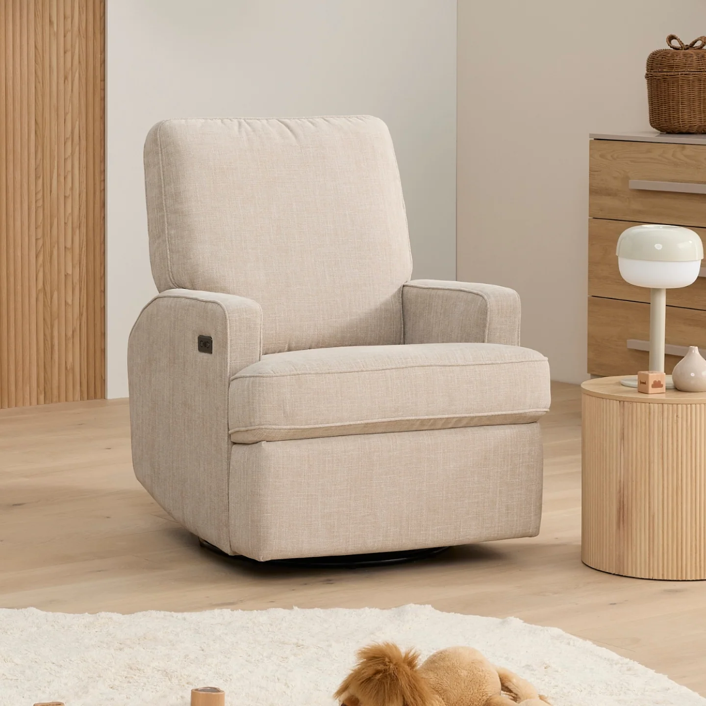 Quinn Electric Recliner Glider Chair with USB in Latté